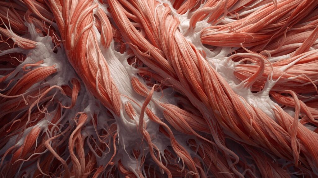 Po 40. roce života jeho hladiny přirozeně klesají o 1-2% ročně, což významně přispívá k sarkopenii – věkem podmíněnému úbytku svalové hmoty. Růstový hormon (GH) funguje jako multifunkční anabolický regulátor: Podporuje buněčný růst a regeneraci ve svalech i kostech, stimuluje produkci IGF-1 v játrech, který zesiluje jeho anabolické účinky, mobilizuje tukové zásoby jako zdroj energie, šetřící svalové proteiny, zvyšuje transport aminokyselin do buněk a posiluje mineralizaci kostí, klíčovou pro strukturální podporu svalového aparátu.